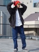 ブラックデニムパンツ。